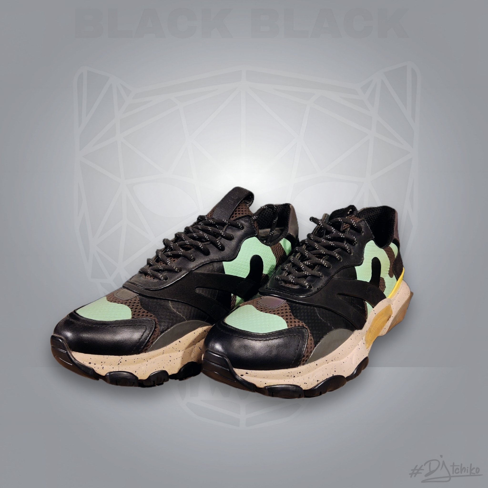 Après les défilés, Valentino enrichit sa gamme toujours plus étoffée de chaussures épaisses avec cette nouvelle version. Prête à l’emploi, cette paire camouflage est confectionnée dans un mélange texturé de mesh et de cuir nappa, rehaussé de touches de rouge vif pour une touche futuriste. La semelle mouchetée exagérée, qui soigne le dessous du pied, confère à la sneaker sa finition signature. Tige en mesh, empiècements en cuir nappa
